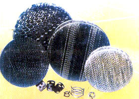 我廠在上海化工研究院指導下,專業生產波紋規整填料及散堆填料,可采用不銹鋼、銅 、鋁、純鈦、鉬五鈦、等材質制作。在香料、農藥、精細化工、石油化工等領域得到廣泛應用。 規整填料分為網孔、絲網、孔板、壓延孔板等。 散堆填料主要有:金屬鮑爾環填料、金屬階梯環填料、金屬環矩鞍即金屬英特洛斯填料。